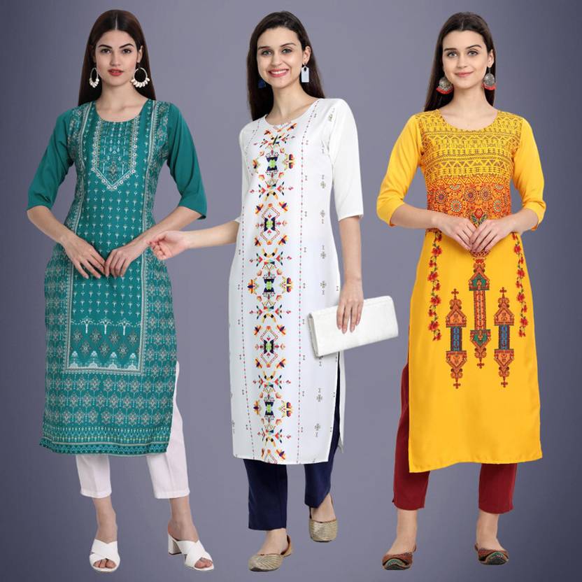 Pack of 3 Women Printed Crepe Straight Kurta (Multicolor)