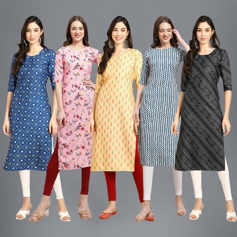EthnicBasket Pack of 5 Women Printed Crepe Straight Kurta  (Multicolor)