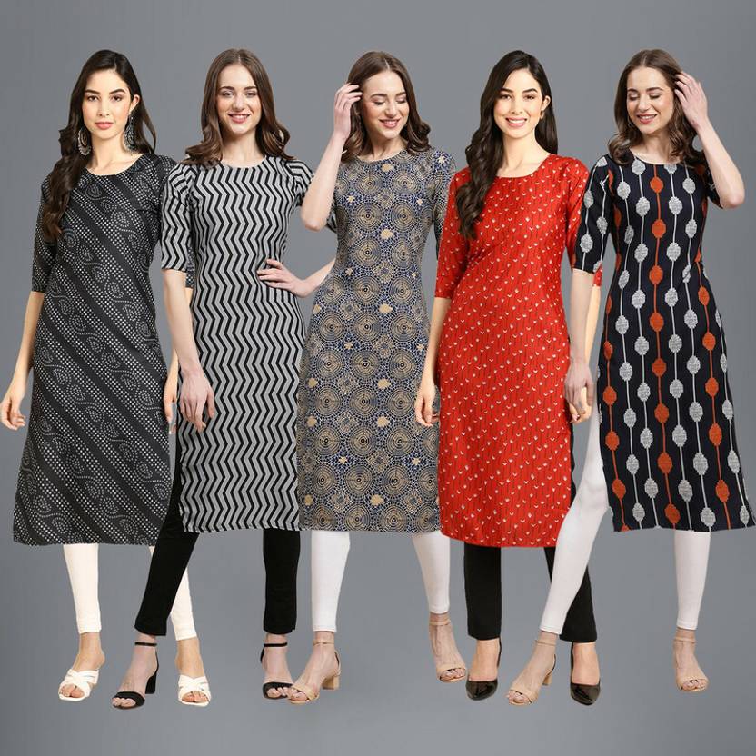 EthnicBasket Pack of 5 Women Printed Crepe Straight Kurta (Multicolor)