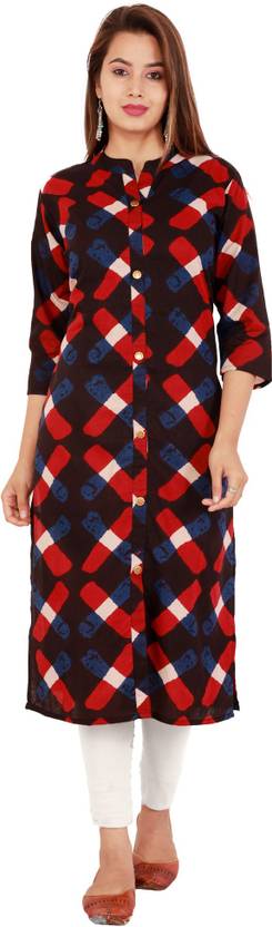 Women Printed Pure Cotton Straight Kurta (Multicolor)