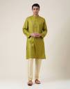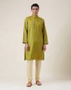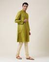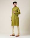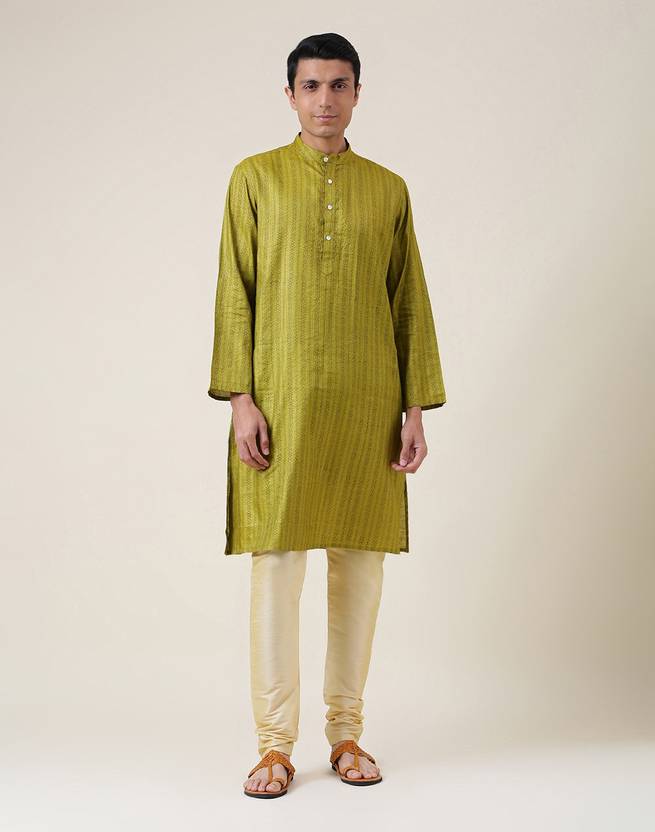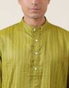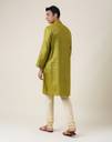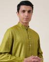Fabindia Printed Green Silk Blend Mandarin Neck Kurta