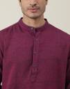 This beige kurta from Fabindia is a wardrobe essential that exemplifies casual elegance to perfection. It combines a classic appearance with a contemporary aesthetic while being adorned with a beautiful Kalamkari print. This cotton kurta with a Chinese collar, a buttoned placket, and roll-up long sleeves is skilfully designed in pure cotton. The kurta can be worn with pyjama bottoms, jeans, and Kolhapuri chappals for everyday fashion.