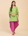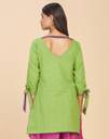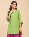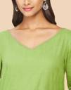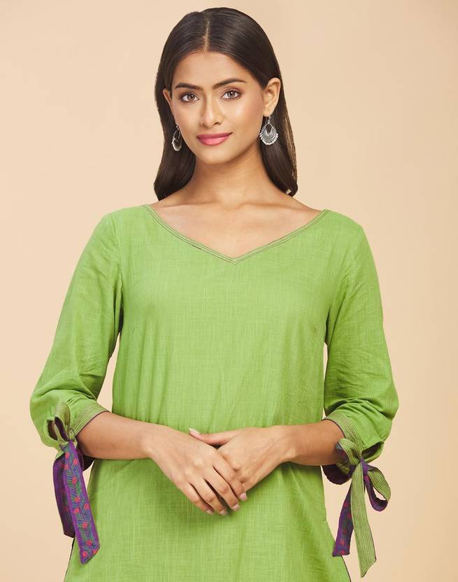 Fabindia Solids Green Cotton V-Neck Kurta