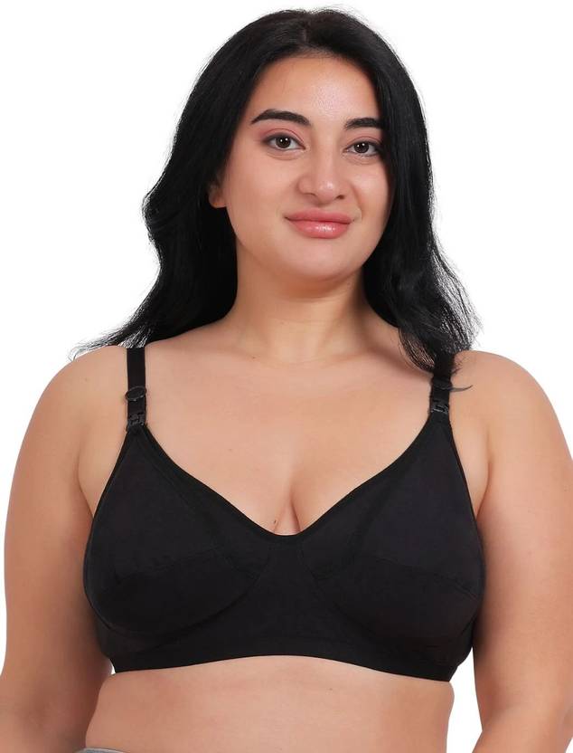 Fabme Plus Size Women Maternity/Nursing Non Padded Bra (Black)