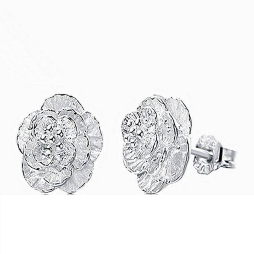 Silver Rose Small Beads Brass Stud Earring