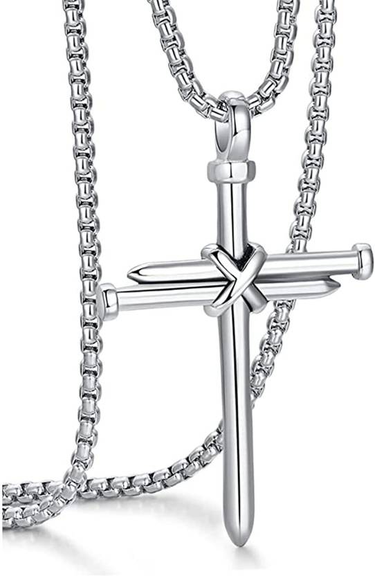 फैज़ाम कलेक्शन Cross Necklace for Men Women Nail Cross Necklace (Silver) स्टेनलेस स्टील चेन