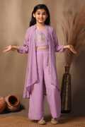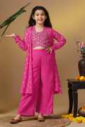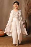 फैशन ड्रीम लड़कियों के लिए त्यौहार और पार्टी एथनिक जैकेट, ब्लाउज़ एंड पलाज़ो सेट (सफेद 1 का पैक)