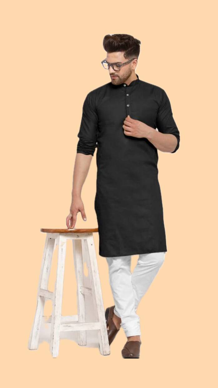The Fashion Outlets Men Solid A-line Kurta (Black)