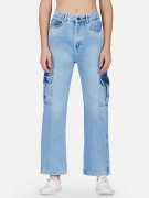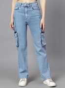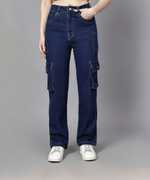FashionFibre Women's Regular High Rise Blue Cargo Jeans blend practicality with style. Featuring a high-rise waist and a relaxed fit, these jeans are designed for comfort and utility. The cargo pockets add a trendy, functional touch, making them perfect for a casual, yet stylish look. The classic blue wash ensures versatility, allowing these jeans to pair effortlessly with any outfit.