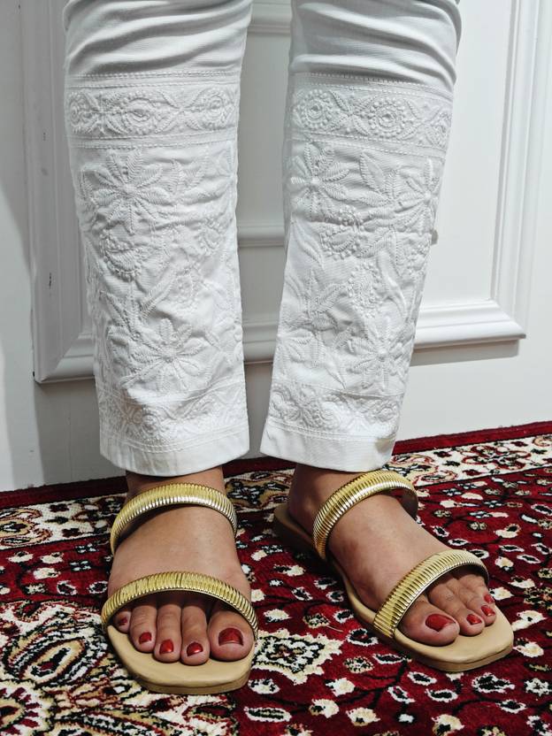 फातिमा चिकन हैंडीक्राफ्ट महिलाओं के लिए सफेद स्लिम फिट ट्राउज़र्स