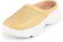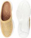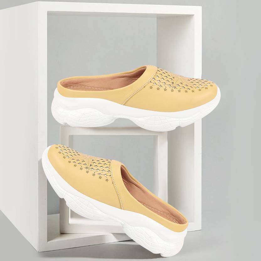 FAUSTO Laser Cut Design Stitched Back Open Slip-On Mules Shoes Casuals For Women (Yellow , 6)