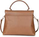 Introducing the Favore Women Tan Leather Satchel Bag, a sophisticated and practical accessory crafted from premium tan leather. This elegant bag features a secure closure with double magnetic snap buttons, ensuring easy access to your belongings while keeping them safe.