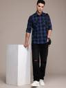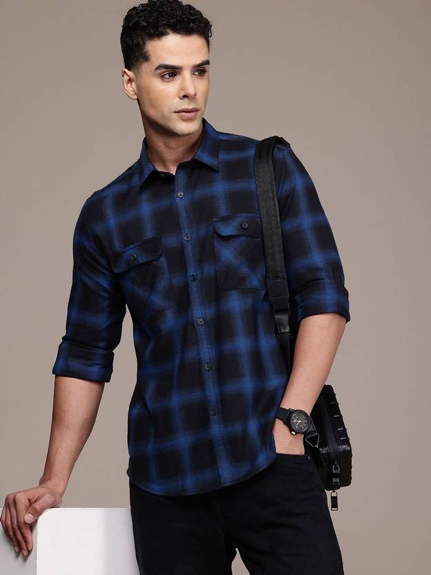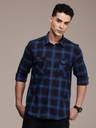 FCUK Men Checkered Casual Blue Shirt