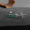 925 Sterling Silver Natural Green Onyx Gemstone Second Hole Small Stud Earrings