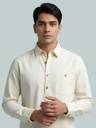 FireFish Men Solid Cotton Blend A-line Kurta (Beige)