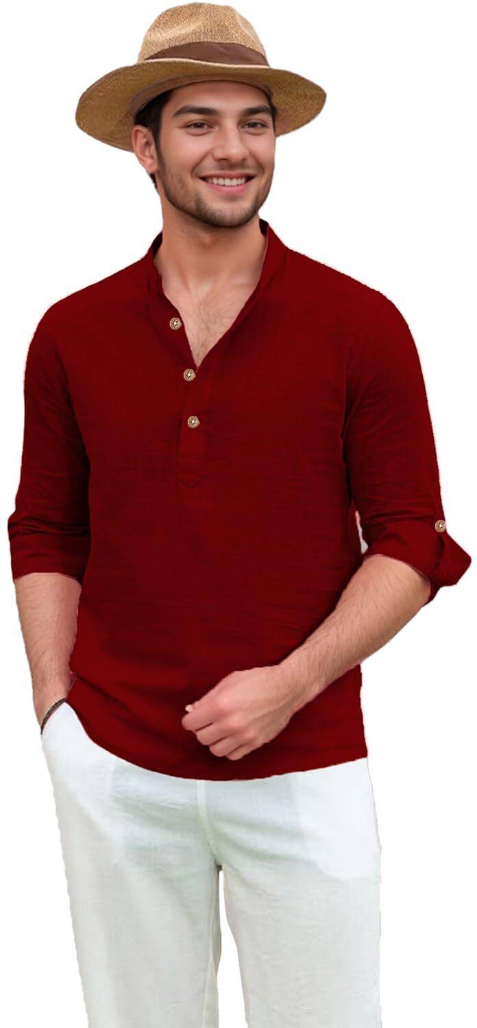 Men Solid Cotton Blend A-line Kurta (Maroon)