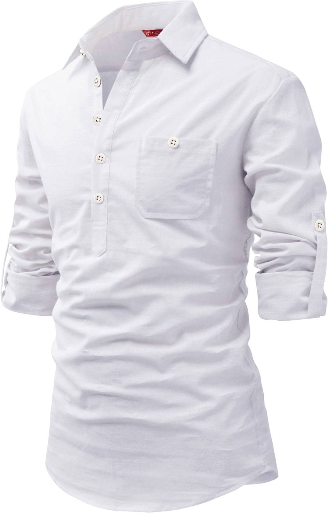 🌟 टॉप फीचर: रोल-अप स्लीव डिज़ाइन फॉर एडजस्टेबल स्टाइलिंग एंड कन्वीनिएन्स, चाइनीज़ कॉलर फॉर ए कंटेम्परेरी टच.