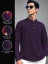 Men Solid Cotton Blend A-line Kurta (Purple)