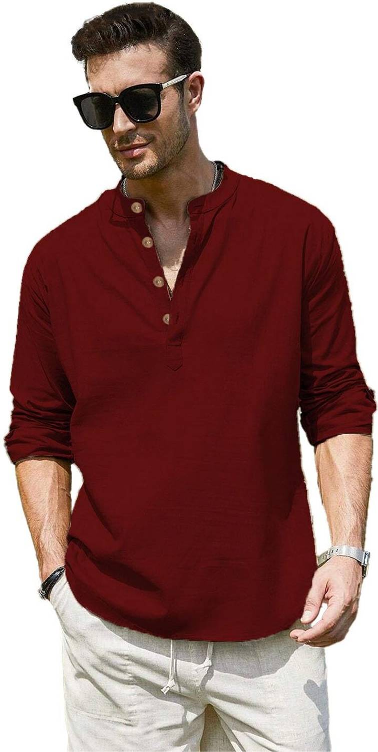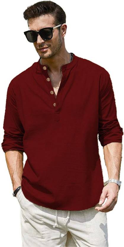 Men Solid Cotton Blend A-line Kurta (Maroon)