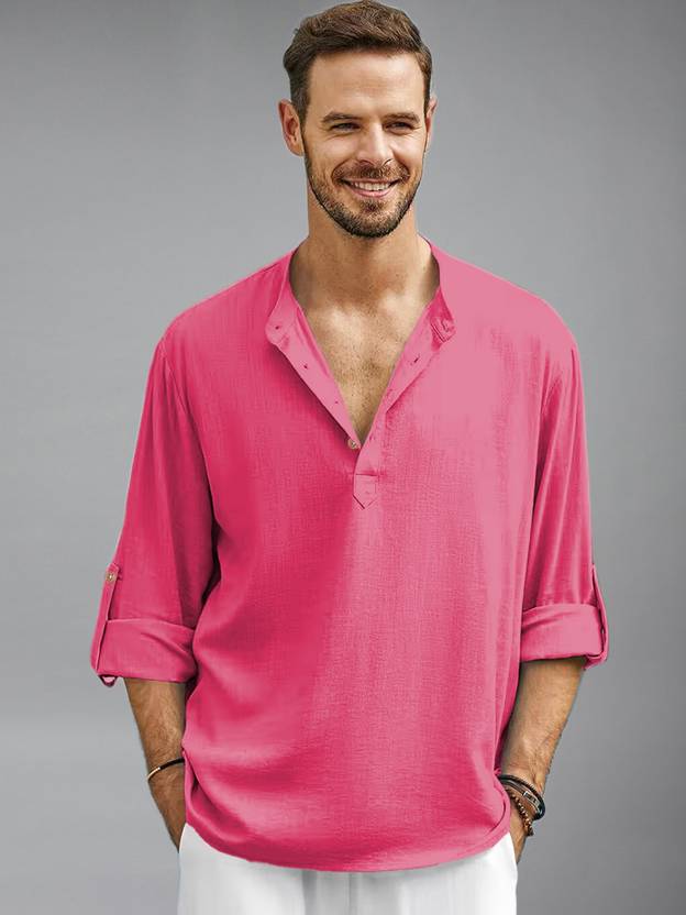 Univibe Men Solid Cotton Blend Straight Kurta (Pink)