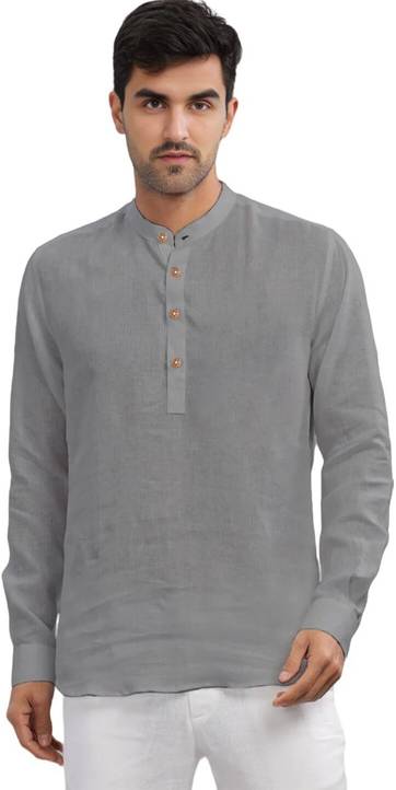 Men Solid Pure Cotton Straight Kurta (Beige)