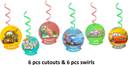 FLICK IN presents pack of 12 which includes 6 mcqueen car cutouts & 6 hanging swirl decorations. The hanging swirl streamers are perfect for babies themed 1st birthday, baby shower, kid’s room, classroom or nursery decorations. The cutouts are made of cardstock, clearly printed and pre-punched for easy hanging. These hangings swirls can be used repeatedly, folded small and will not occupy space. These wall decoration looks very beautiful when decorated well. These decoration can be hang from ceiling or use it as a wall decoration theme balloon garland decor. Swirl and the characters are made of cardstock paper. Car party favor can be used in various occasions, such as kid's birthday parties, Christmas, game parties, class holiday party, and family entertainment parties, etc.