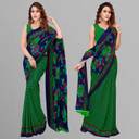 Anand Sarees Floral Print Daily Wear Georgette Saree with Unstitched Blouse (Pack of 2, Green, Blue, Yellow)