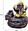 Back-flow cone incense burner creates an illusion of a smokey waterfall. This piece of art has lord Lord Ganesha sitting and meditating beside the waterfall. Simply place an incense cone at the top of the waterfall, and with the cone's special properties, the smoke starts to flow in reverse direction, that is from top to bottom, and in-turn creates a beautiful smokey waterfall. With scented smoke flowing in waves beside the Lord Ganesha, this makes the perfect housewarming gift for any home! This showpiece has been diligently handcrafted by skilled artisans using various traditional techniques. Package Contents One backflow incense holder 10 Free Smoke Scented Cone Incenses Highlights Item Size: 10 cm x 7 cm x 12 cm One backflow incense holder Backflow incense might take 30-40 seconds to start Back-flow incense burner creates an illusion of a smokey waterfall Simply place an incense cone at the top of the waterfall and with the cone's special properties, the smoke starts to flow in reverse direction, that is from top to bottom and in-turn creates a beautiful smokey waterfall.
