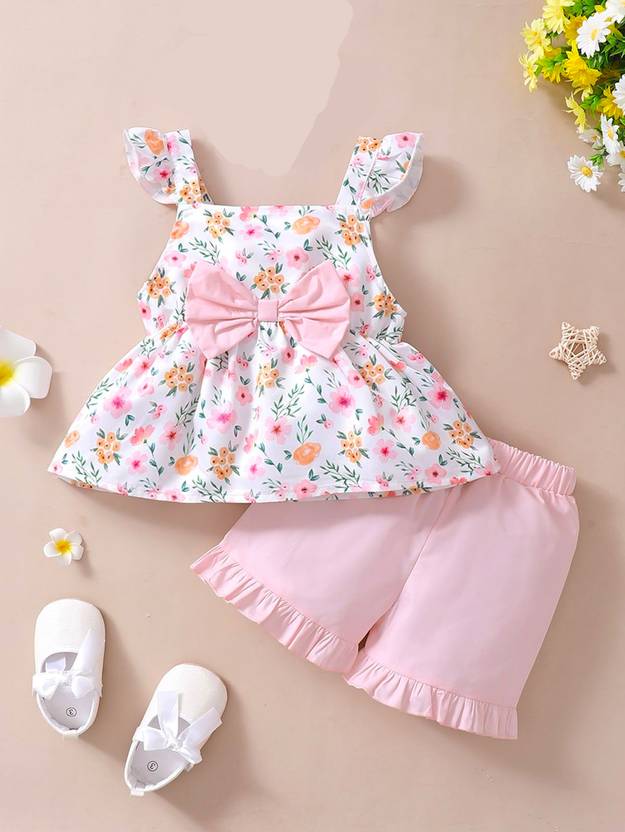 फोसेन छोटी बच्चियाँ कैज़ुअल टॉप शॉर्ट्स (पिंक)