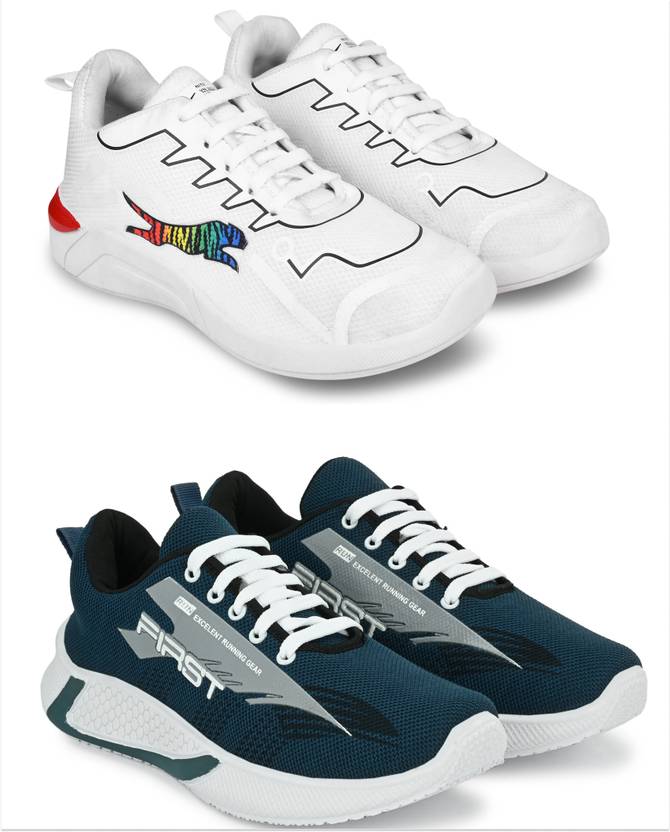 Free Kicks Combo Of 2 Shoes FK-566 & FK-PM-1100 Sneakers For Men (White , 9)
