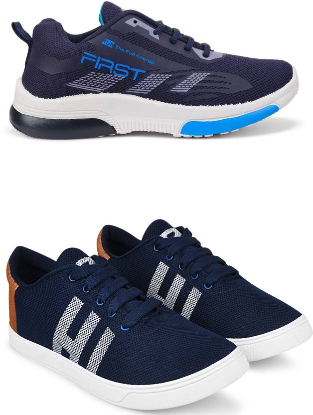 Free Kicks Combo Of 2 Shoes FK-570 & FK-Mcw145 Running Shoes For Men (Navy, Tan , 10)