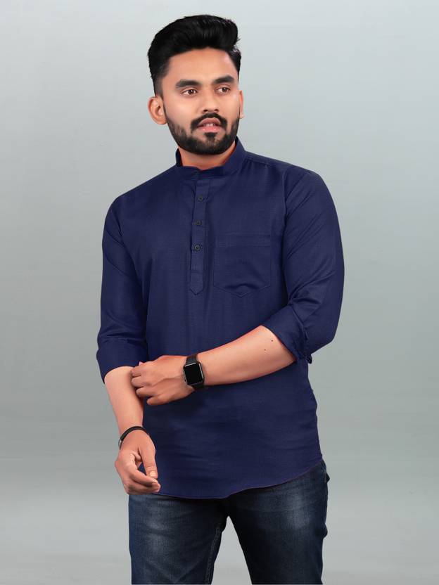 फ्रेल्यूरो पुरुषों के लिए सॉलिड स्ट्रेट कुर्ता (गहरा नीला)