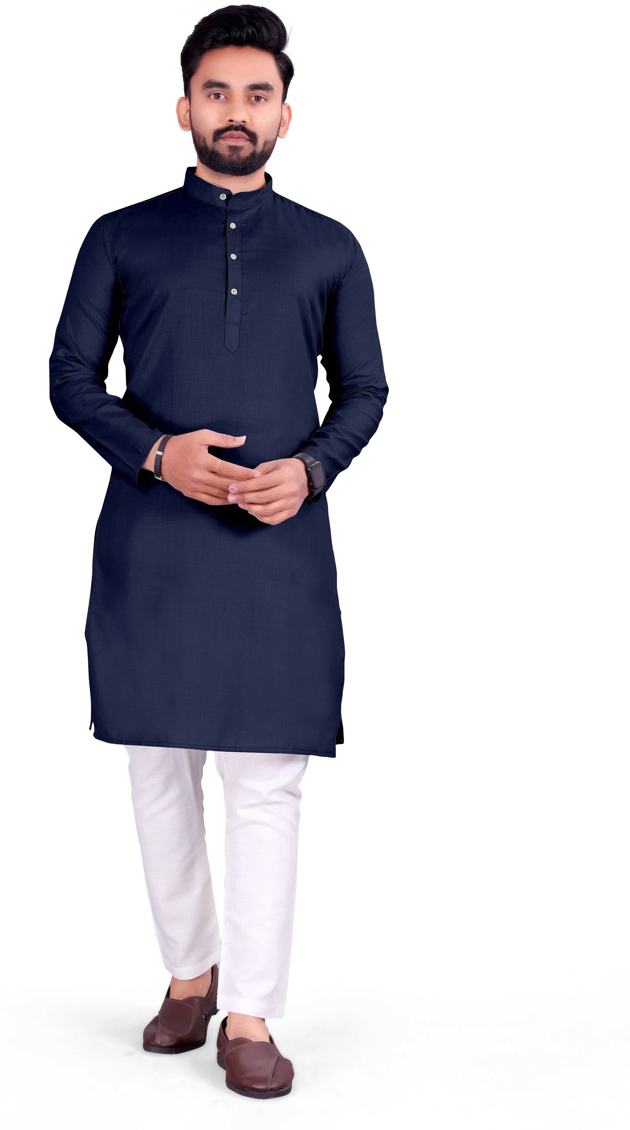 This Trendy And Attractive Men's Pathani kurta And Look Stylish Effortlessly. Made To Accentuate Any Body Type, It Will Give You That Extra Oomph And Make You Stand Out Wherever You Are. This kurta Is Ideal For The Party,Ocassional,Festive,Evening, Valentines Day, Birthday, casual, Etc.The Kurta Is Made Of Standard Fabric Material Which Feels Very Smooth On Skin.. It features Full sleeve, Shirt Collar.Festival/Casual wear Men's Cotton fabric kurta with long sleeves and Cut away collar that you pair with pajama,churidar,jeans.