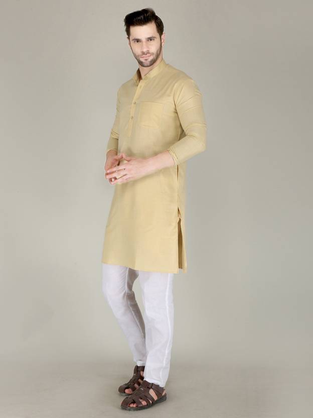 फूबर पुरुषों के लिए सॉलिड स्ट्रेट कुर्ता (सुनहरा)