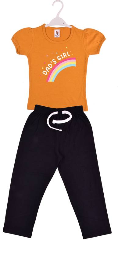 Girls Casual T-shirt Pant (YELLOWBLACK)