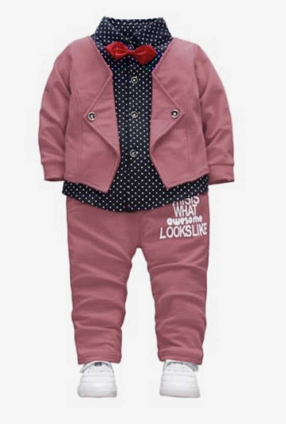 G V ENTERPRISE Boys Party(Festive) Shirt Pant, Jacket, Bow Tie (PINK)