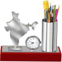 The gaba time decorative pen stand featured here is another evidence of the quality of the product produced by the company. Fitted with a cylindrical pen stand with an amazing finish, the gaba time decorative pen stand also has an analog table clock encased in a steel frame and a white dial. The roman dial adds another level of elegance while the placement of the map of India is another feature worthy of looking at.