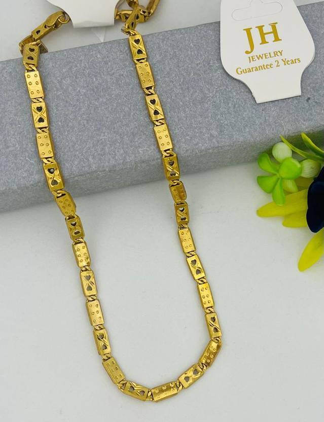द चेन हैज़ एन ओप्युलेंट गोल्ड प्लेटिंग. द चेन गेन्स ए हिंट ऑफ रिफाइनमेंट एंड ग्रेंड्योर फ्रॉम इट्स प्लेटिंग. द एस्थेटिक अपील ऑफ द चेन इज़ एलिवेटेड बाय द एडिशन ऑफ गोल्ड प्लेटिंग, व्हिच इम्पार्ट्स ए डैज़लिंग, गोल्डन टोन इन एडिशन टू इम्प्रुविंग इट्स विज़ुअल अपील. फर्दरमोर, द प्लेटिंग एक्ट्स एज़ ए बैरियर, प्रीवेंटिंग कोरोशन ऑफ द ब्रास बेसिस एंड एंस्योरिंग ए परसिस्टेंट, ब्रिलिएंट शीन.