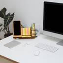 मोबाइल स्टैंड के साथ एक टेबल के लिए एक लकड़ी का डेस्क आयोजक एक आकर्षक, मल्टी-स्टोरेज आयोजक, एक पूरी तरह से तैयार होल्डर है जो पेन, पेंसिल, मार्कर, कार्ड, मोबाइल और कई और बुनियादी आवश्यक स्टेशनरी डेस्क प्रोडक्ट्स को क्लटर फ्री रखने के लिए
