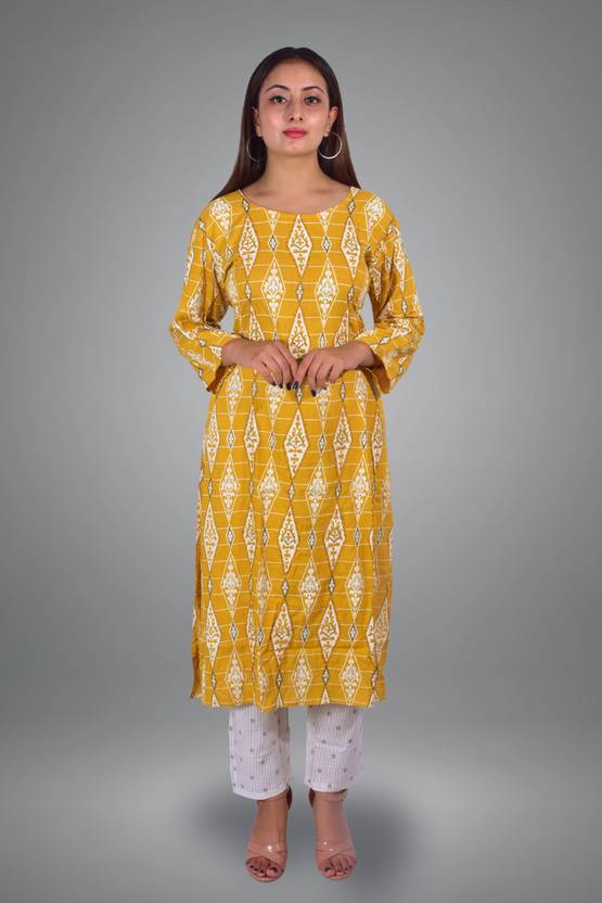 Women Printed Viscose Rayon Straight Kurta (Yellow)