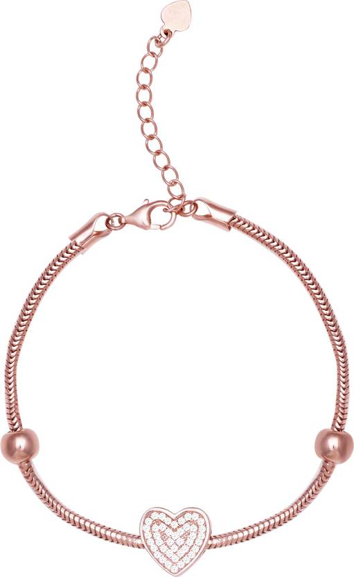 The Inspiration:DIVA, YOU are the goddess of beauty and grace. It's no surprise that so many hearts beat only for YOU! This Rose Gold Studded Heart Bead Bracelet is inspired by the millions of hearts YOU capture each day.The Design:This Rose Gold Studded Heart Bead Bracelet has been handcrafted with love, especially for YOU! This bracelet is detailed with an array of sparkling zircons with a dazzling heart at the center. The two lustrous rose gold beads complete the mesmerizing look.The Styling:Wear it, forget it and let it work its magic!