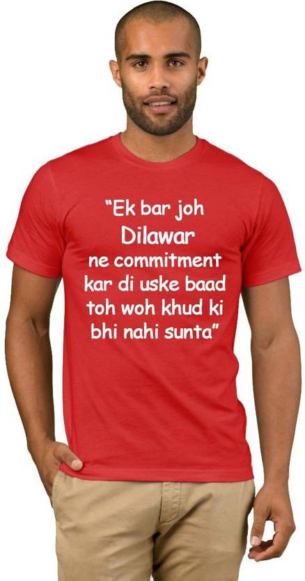 Men Typography Round Neck Cotton Blend Red T-Shirt
