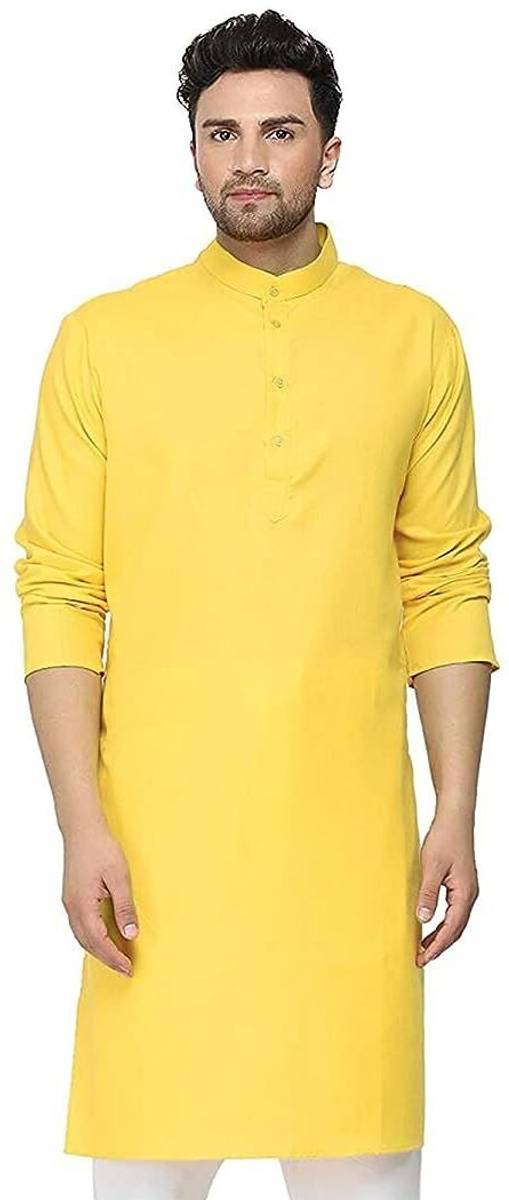 गोलाज़ो पुरुषों के लिए सॉलिड स्ट्रेट कुर्ता (पीला)