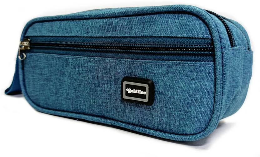 गोल्डलाइन Stylish and Portable Large Stationery 2.5L Simple Pencil Pouch/Cosmetic Pouch or Desk Organizer Bag with Zipper for School, Office, Travel/Multipurpose Pouch for Girls and Boys (23x11x10 Cm) थैली (नीला)