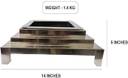न्यू हाई क्वालिटी 100% स्टेनलेस स्टील हवन कुंड फॉर होम == ओवरऑल विड्थ - 14 INCHES == हाइट - 5 INCHES - सेपरेट लूज़ इनसाइड पॉट फॉर ईज़ ऑफ क्लीनिंग == इनसाइड पॉट डाइमेंशन्स 7.5 x 7.5 INCHES | DEP - 4 INCHES | आइडियल साइज़ फॉर पूजा एट होम | वेट - 1.4 KG == स्टर्डी एंड ड्यूरेबल फॉर लाइफटाइम