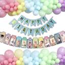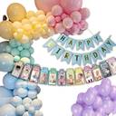 1st Birthday decoration Pack of 52pc - 10 Blue, 10 Pink, 10 Lilac, 10 Yellow, 10 Mint Pastel Balloons, 1 Blue Happy Birthday Banner, 1 Multicolour photo banner