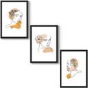 GS Decor Set of 3 Elegant Floral Head Ladies Wall Art - Plexi Glass | Boho Room Decor - Black Frame Digital Reprint 11.69 inch x 9.27 inch Painting (With Frame, Pack of 3)