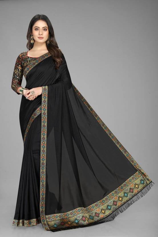 Solid/Plain Bandhani Silk Blend Saree (Black)