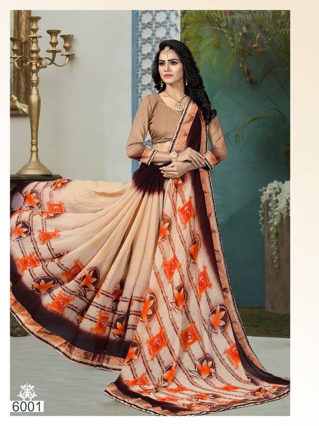 Embroidered Daily Wear Chiffon Saree (Brown, Cream)