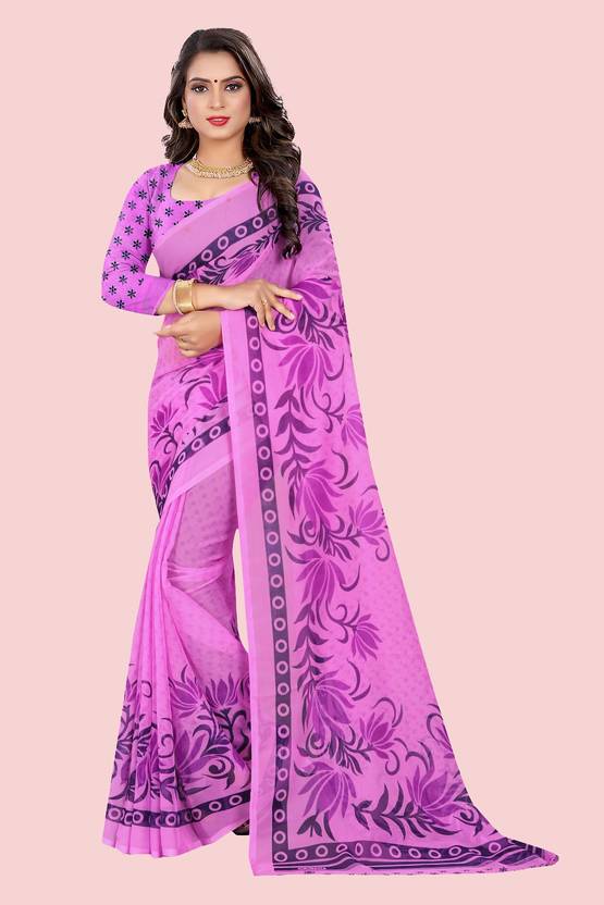 Printed Daily Wear Chiffon Saree (Pink)